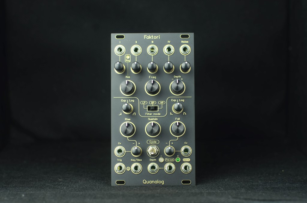 So the idea is to have a filter module that can process any multiple drum sound or waveform. This is the best way to mix all different wave shape or multiple sound source (paraphonic) and the result after modulation (sub/fold/ring mod…) into a final source before going thru variable filter with a highly precision function generator as modulation source. Without any external sound source Faktori is already a filter noise sound module by itseft with capable of making sidechain noise or drum voice like hihat, snare, tom, 2nd kick drum with the little help from a wide range funtion generator that can produce from a very snappy/high pitch vco to a long lasting enverlope curve that can be use for generative modular music.